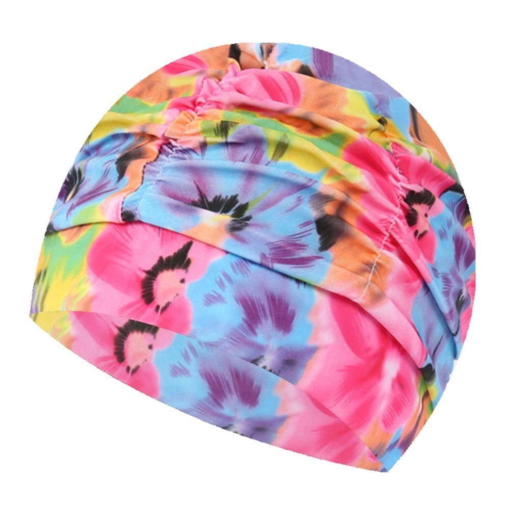 2 Pack Pleated Swimming Cap Long Hair Cloth Febric Swim Caps Bathing Cap, Colorful Flowers 2 Pack Pleated Swimming Cap Long Hair Cloth Febric Swim Caps Bathing Cap, Colorful Flowers
