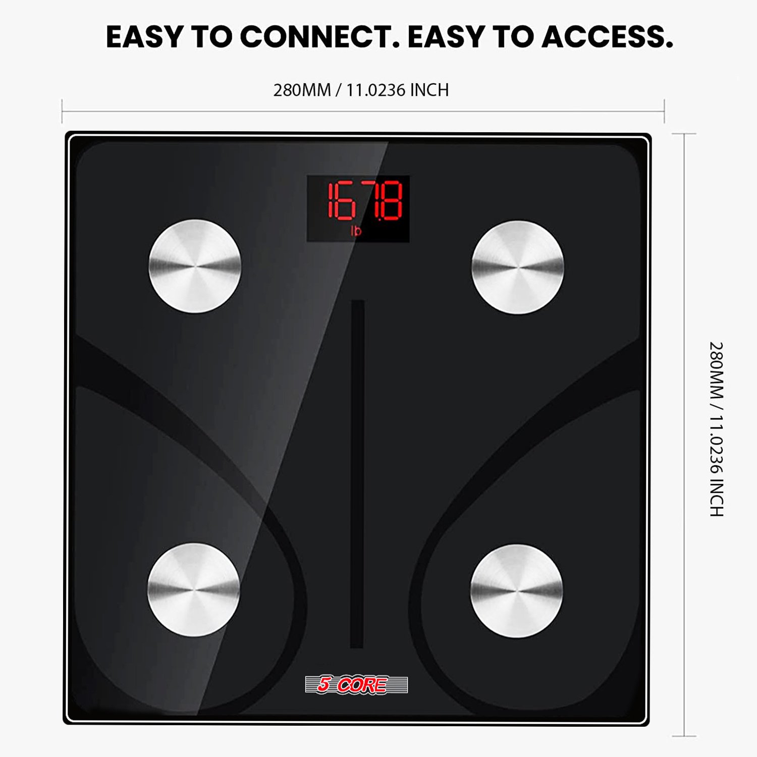 5 Core Scale for Body Weight Battery Power Smart Digital Most Accurate Fat Loss Machine Pesas Para Pesar Personas w App Sync - BBS DOT B BLK