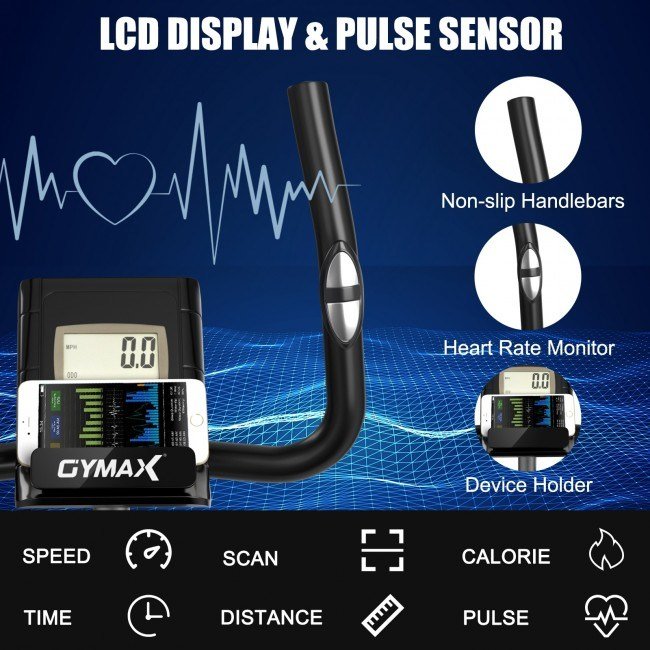 Premium LCD Monitor and Pulse Sensor: Pulse sensors on the two handlebars on the LCD screen will detect your heart rate. The LCD monitor also tracks real-time data, like speed, time, distance, and calories burned, keeping you always up-to-date on your physical workout.