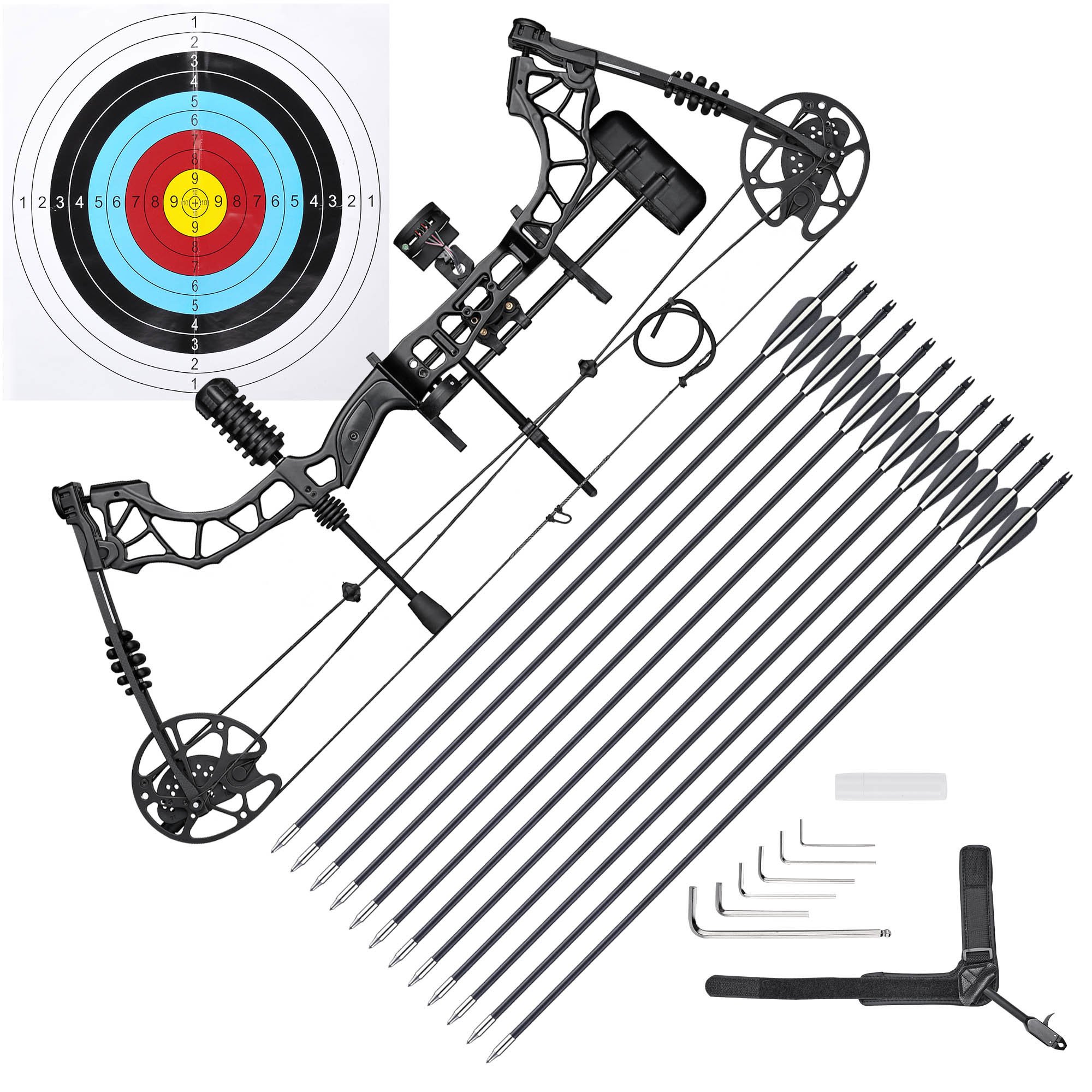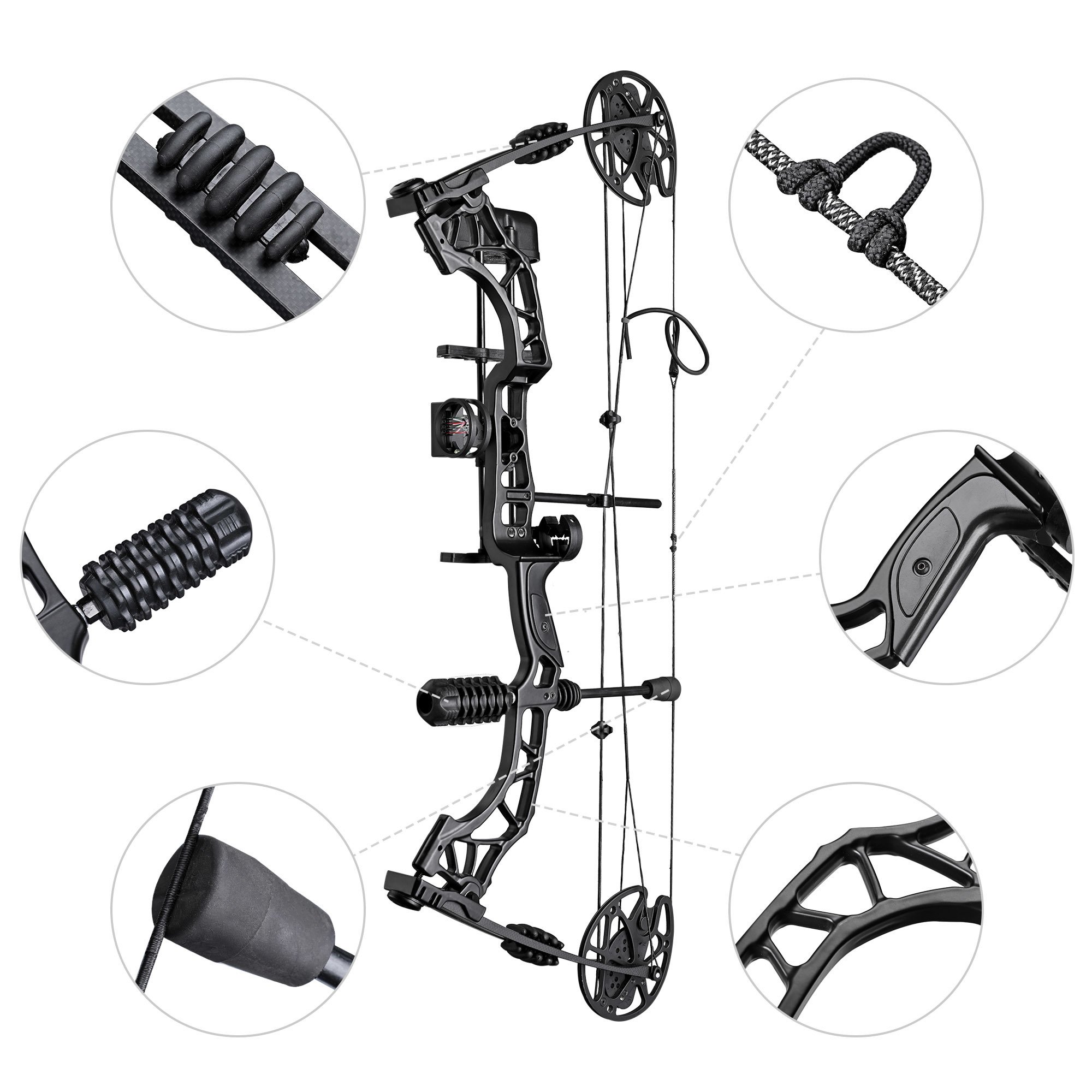 Features:- Compound Bow Kit - Includes a 35 to 70 Lbs right hand compound bow, release aid, target paper & 12 carbon arrows, perfect gift for beginners or masters; Compact design to help you fast adapt outdoor hunting, bowfishing, target archery & more
