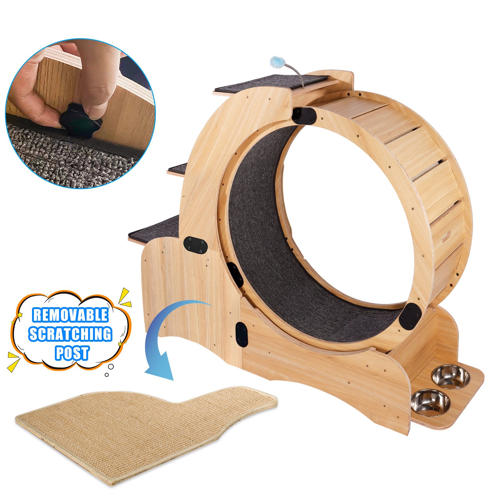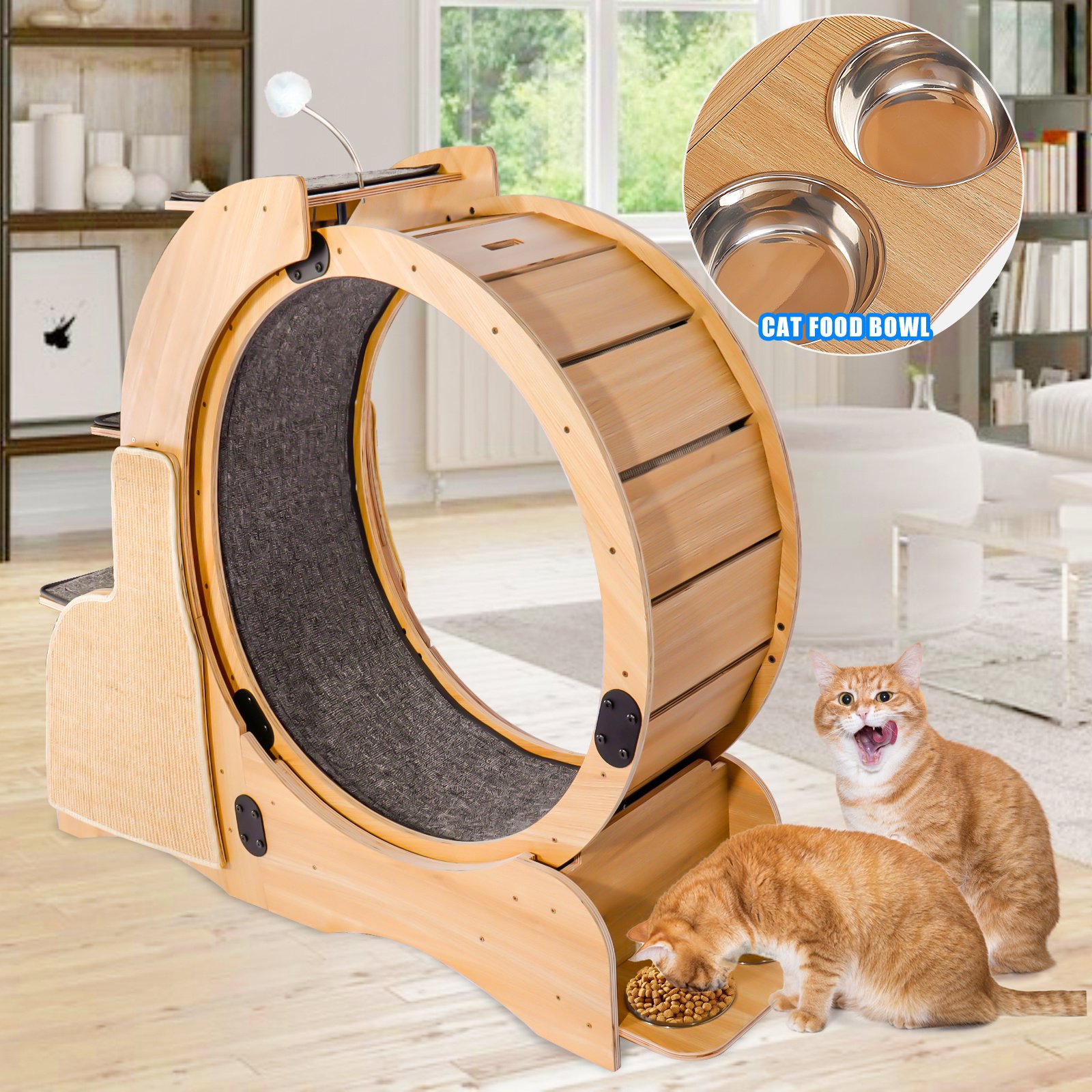 Rich in functions: a cat running wheel includes cat scratching boards, climbing ladders, cat litters, places for eating and drinking