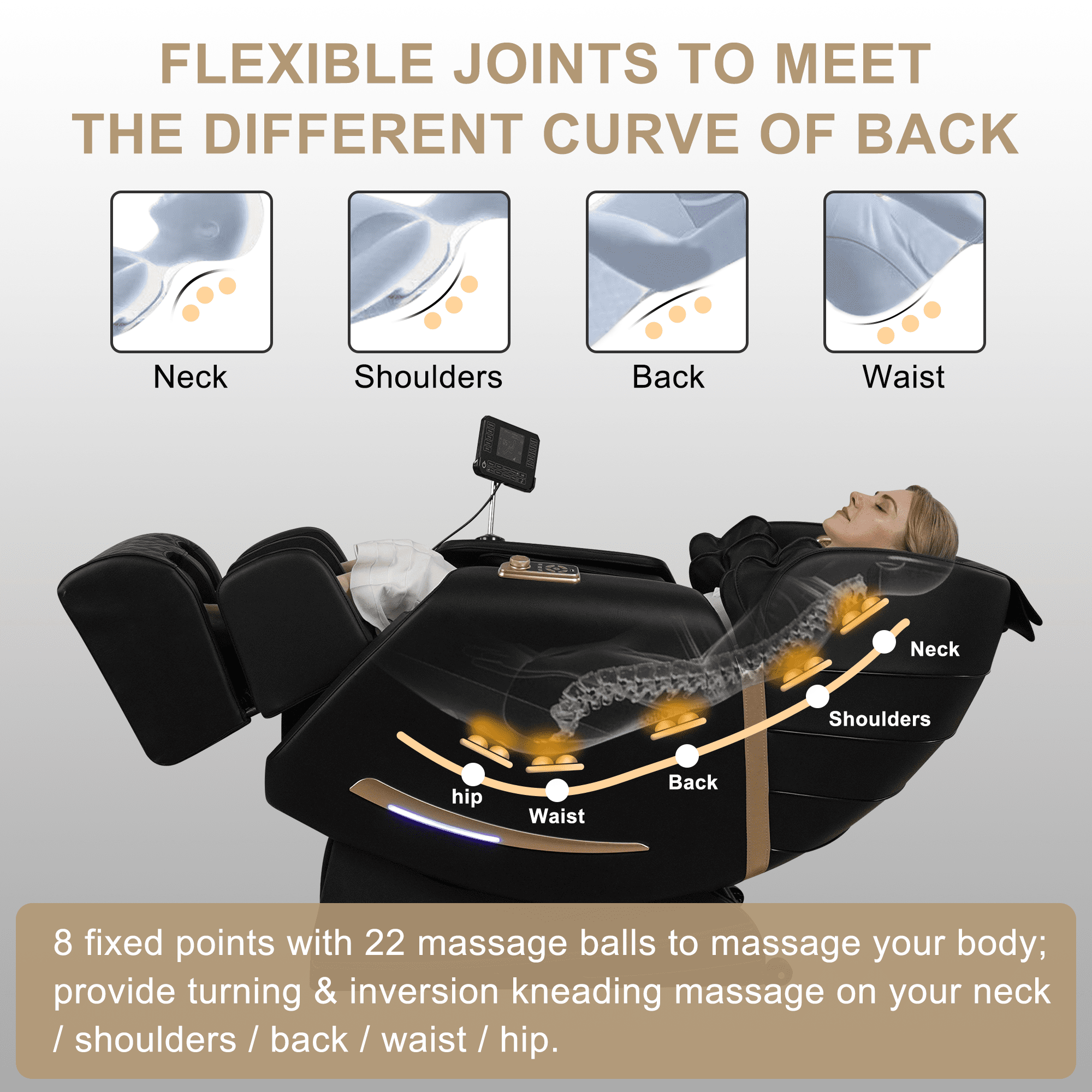 Full Body Massage: 8 fixed points with 22 massage balls to massage your body,provide turning & inversion kneading massage on your neck,shoulders,back,waist and hip.