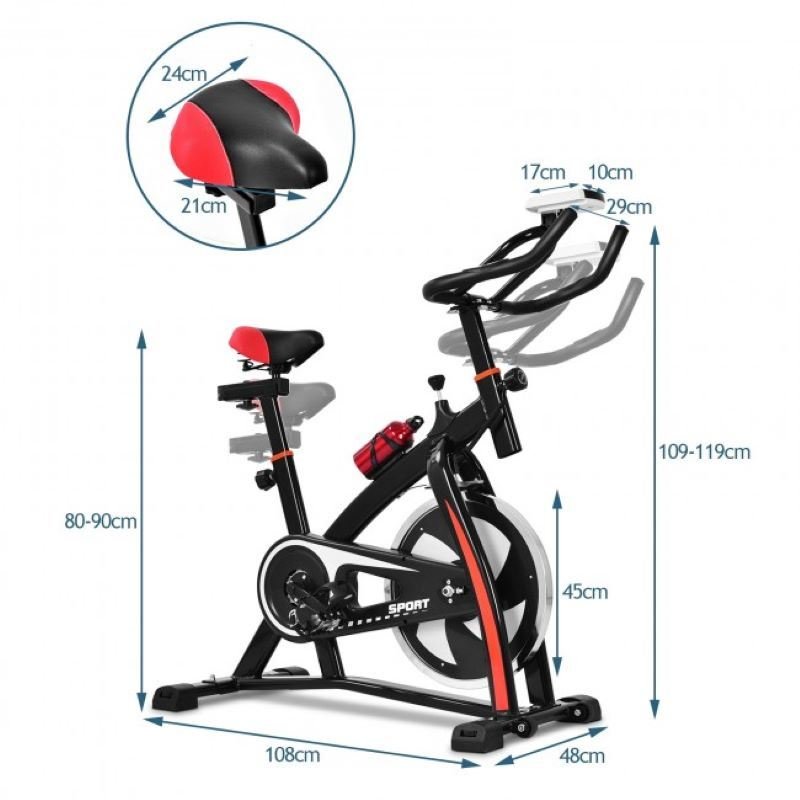 Adjustable height of the bar handle: 42" - 46"                                          Package includes:  1 x Exercise bike  1 x Water bottle  1 x Instruction