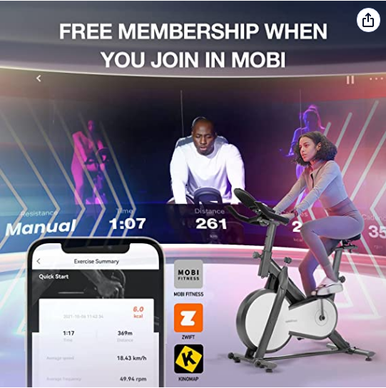 2.Immersive Cycling Experience with FREE APP - Enjoy the guidance of professional fitness instructors at home with free recorded classes from mobifitness app. Train with coaches who will lead you step by step to achieve your goals. Your home workout doesn’t to be lonely. This exercise bike offers comp
