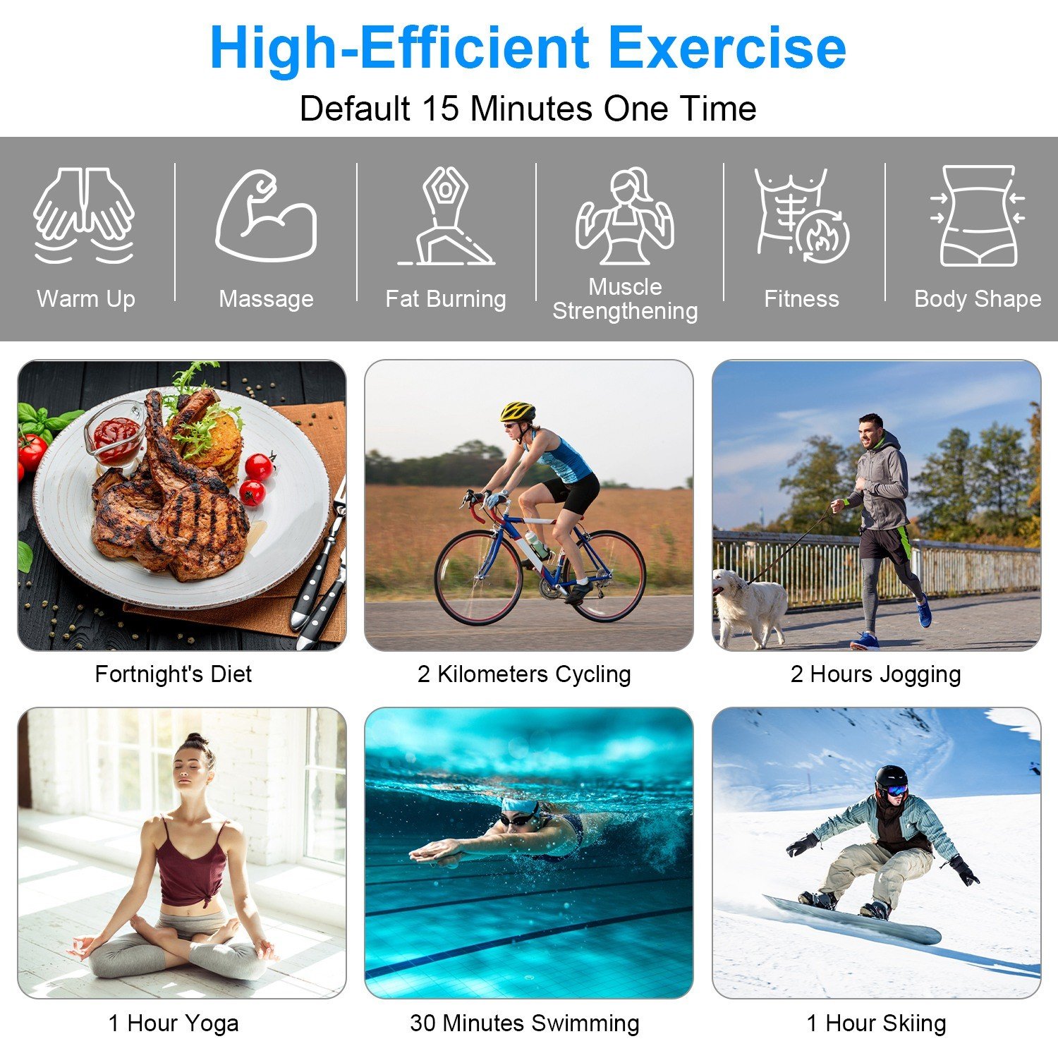 * High-Efficient Exercise*: Abdominal Fitness Belt runs about 15 minutes one time by default, which is equal to 30 minutes' swimming,60 minutes' sit-ups, 2000-meter running and a fortnight's dieting. We recommend to use it twice a day for 15-30mins. Besides,PU leather surface ensures easy wipe cleaning.