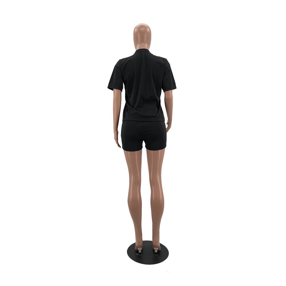 L285247-2 Women Fitness Clothing Fashion Summer Short-sleeve Alphabet Sports Suit