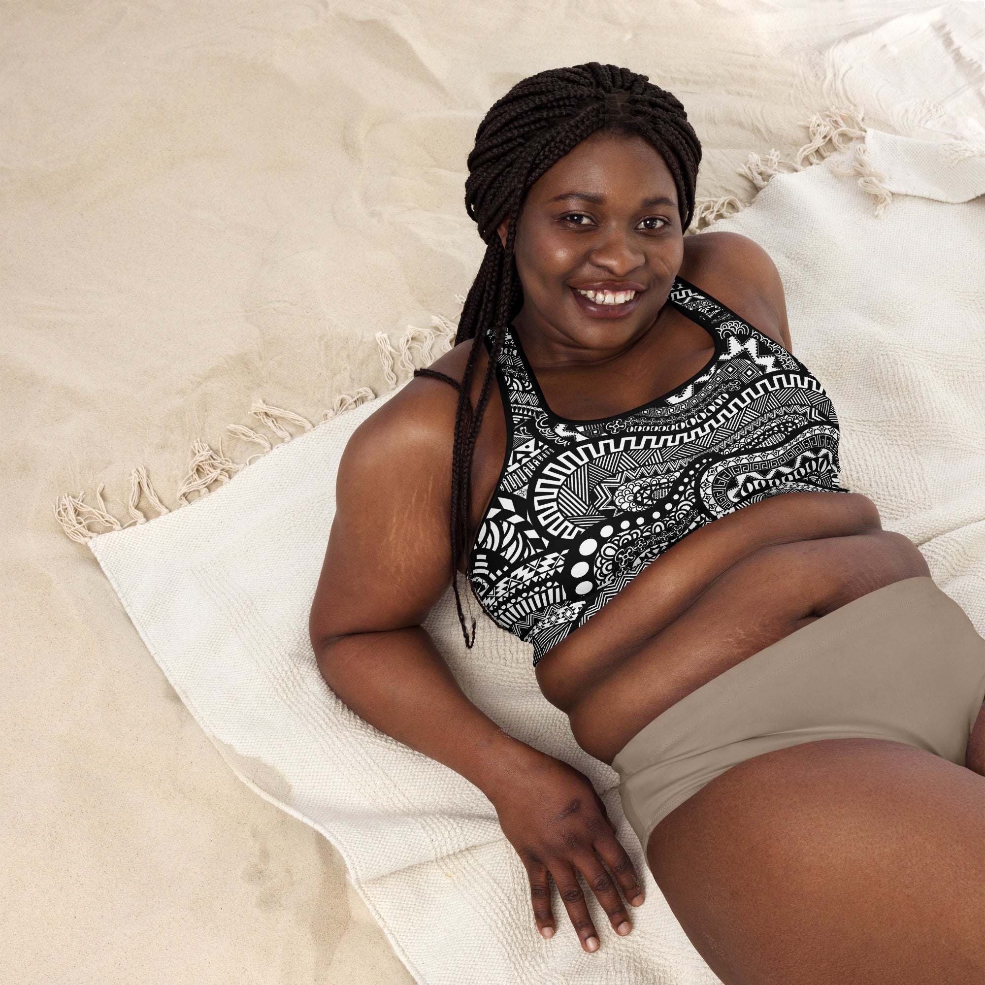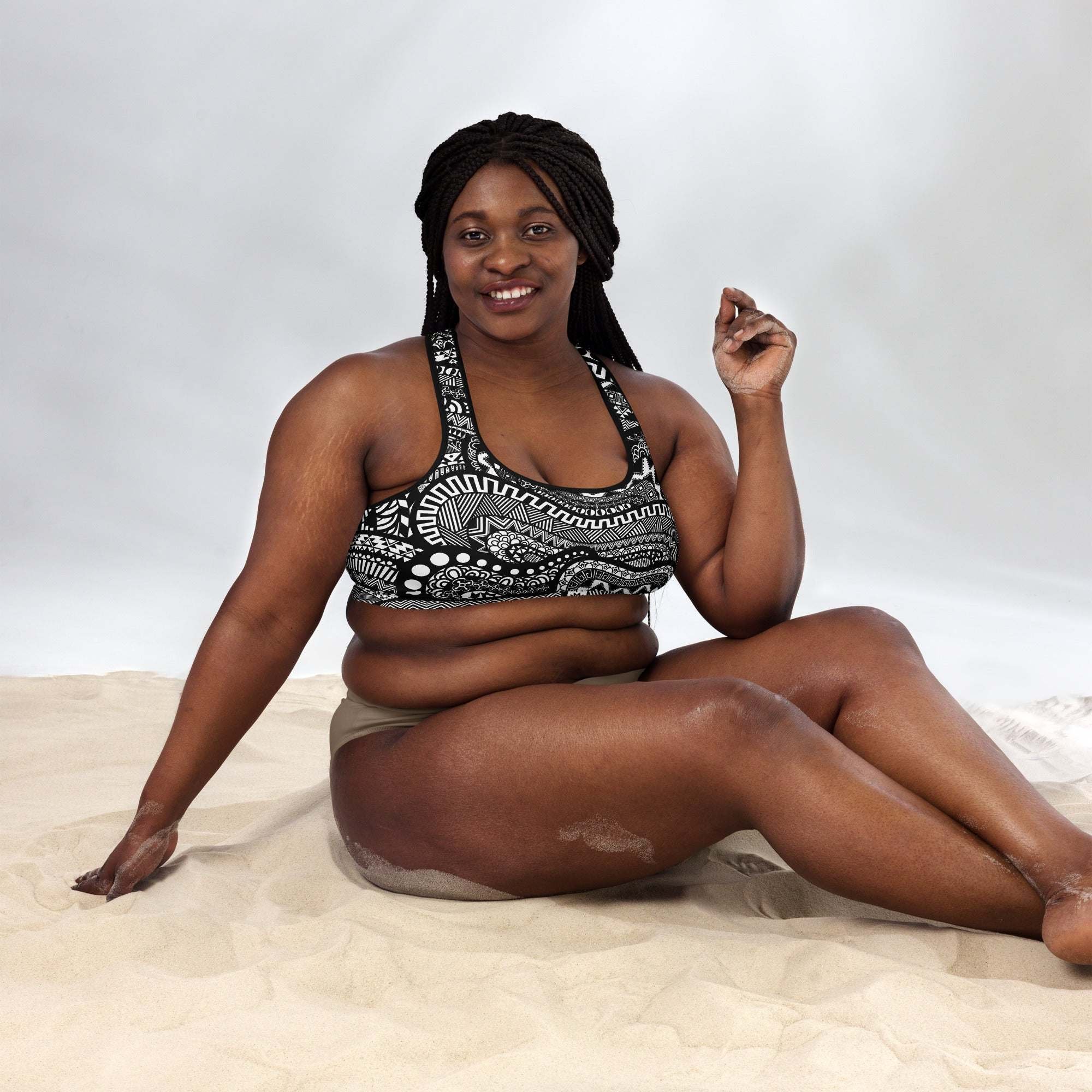 By purchasing our White wavy sports bra print , you are not only acquiring a unique and vibrant piece of fashion but also making a meaningful impact on the lives of these women. Your purchase provides them with sustainable income, allowing them to support their families, access education, and build a brighter future for themselves and their communities.