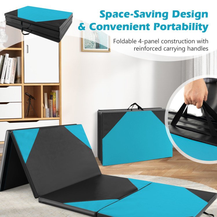 5.Space-Saving Design: This gymnastics mat features a foldable 4-panel construction that allows for easy storage and space-saving convenience. Whether you're a professional gymnast, athlete, or fitness enthusiast, this versatile mat is perfect for various exercises, stretches, and routines.