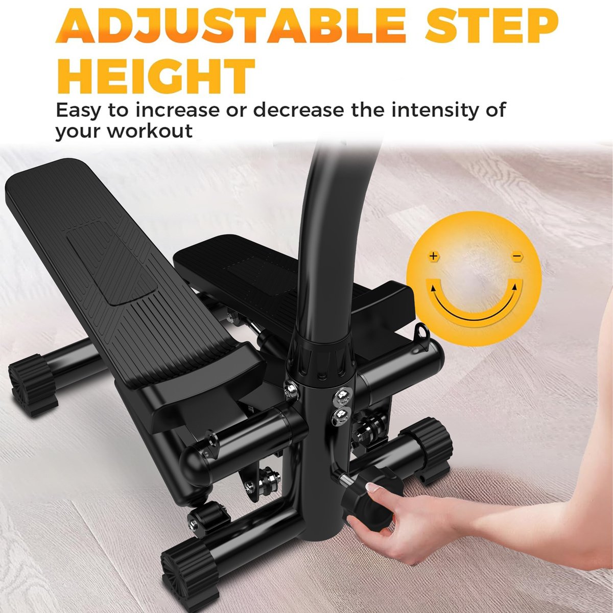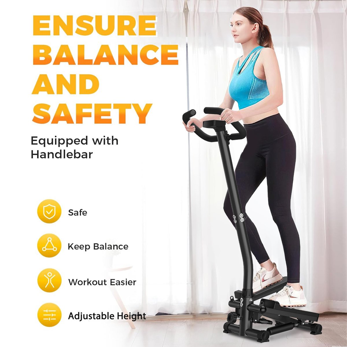 [Upgrade Mini Stepper With Handlebar]Stepper with Handlebar helps keep you balanced while you step. Great for beginners who are new to the stepping world. The U-shaped Handlebar Provides different grip points and meets more different heights of your family. The new design of the handlebar rod bent outwards provides enough space for stepping exercises to prevent the knee from touching the rod during exercise.